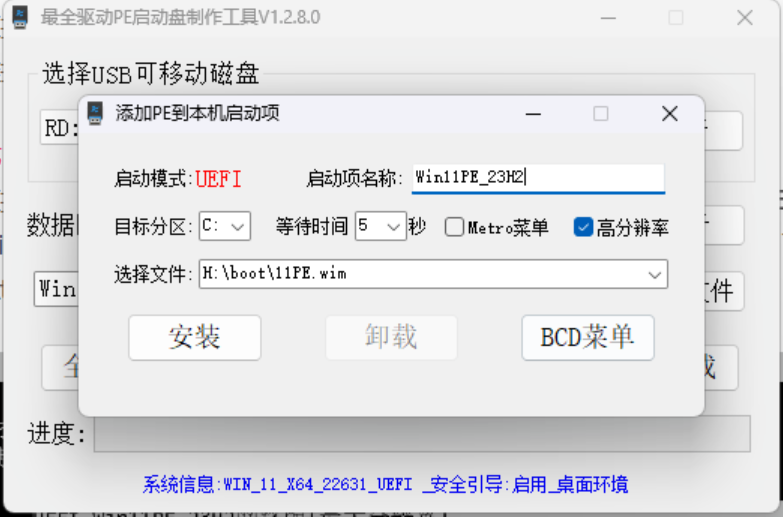 仅支持二分区Data+MSEFI制作,启动分区可以直接过安全启动,无需在BIOS中关闭,同时解决了部分电脑默认只能识别第一个MSEFI分区的问题。